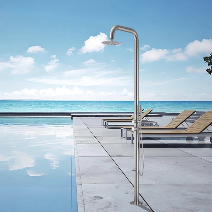 Η στήλη ΝΤΟΥΣ PREMIUM INOX (3 ΕΞΟΔΩΝ) είναι μια υψηλής ποιότητας εξωτερική στήλη ντους από ανοξείδωτο ατσάλι 304# με brushed nickel φινίρισμα. Είναι ιδανική για χρήση σε ξενοδοχεία, παραλίες, πισίνες και κήπους.