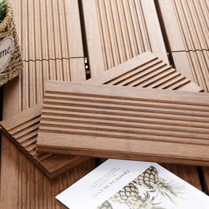 Bamboo δάπεδο εξωτερικού χώρου υψηλής αντοχής, κατάλληλο για κήπους, βεράντες και επαγγελματικές εφαρμογές. Οικολογικό, αντιολισθητικό και πιστοποιημένο για μακροχρόνια χρήση σε εξωτερικές συνθήκες.